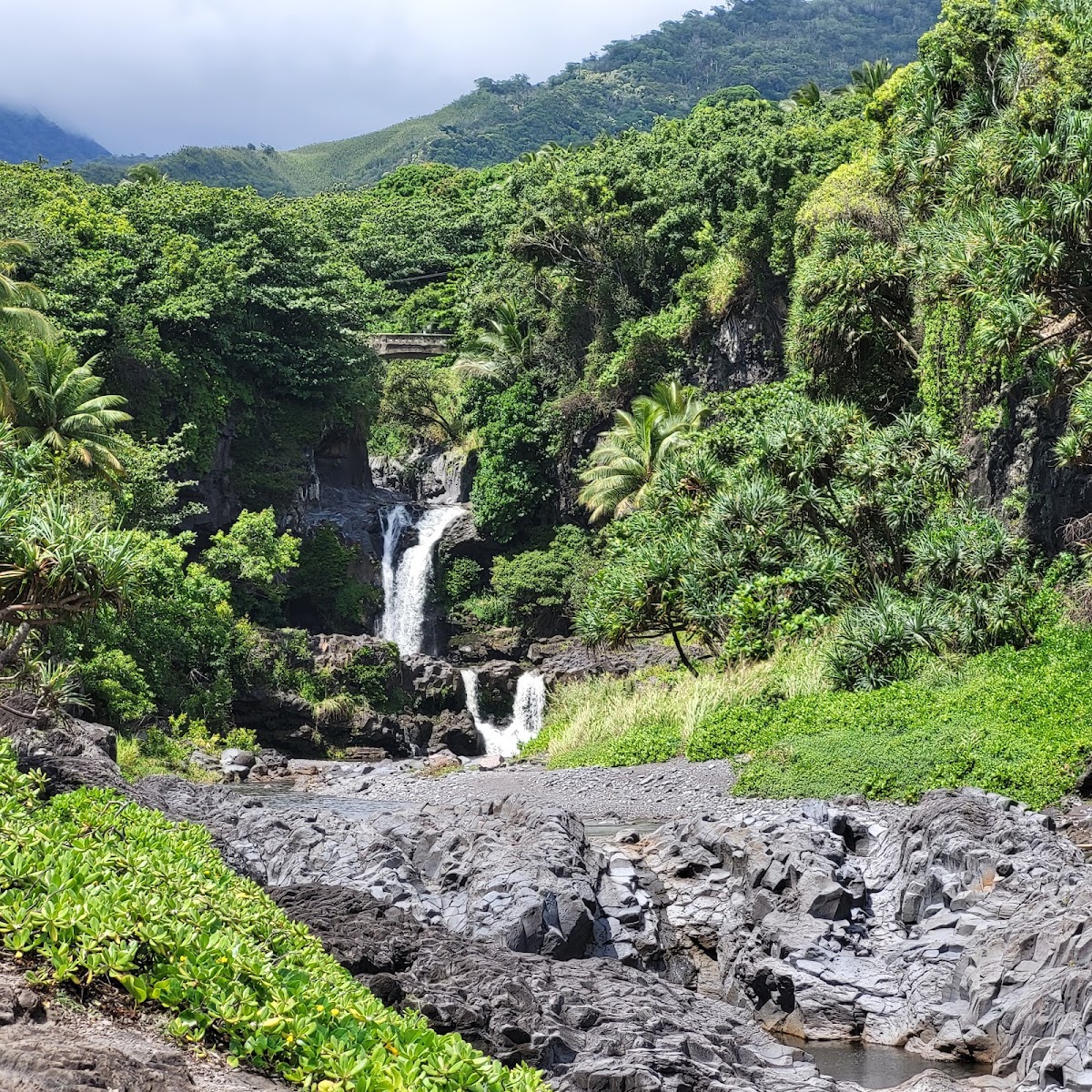 Here's the reality: swimming has been prohibited since 2018 due to flash flood concerns, so come for the views and photo ops, not a dip. The short 10-minute walk from the visitor center is easy and rewarding, with black sand areas near the coast and mesmerizing ocean views. This is also your starting point for the epic Pipiwai Trail through the bamboo forest to Waimoku Falls — definitely do both in one visit.
